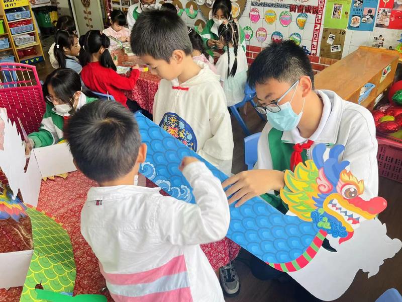 泉州五中学子与东红幼儿园小朋友一起“造龙舟”