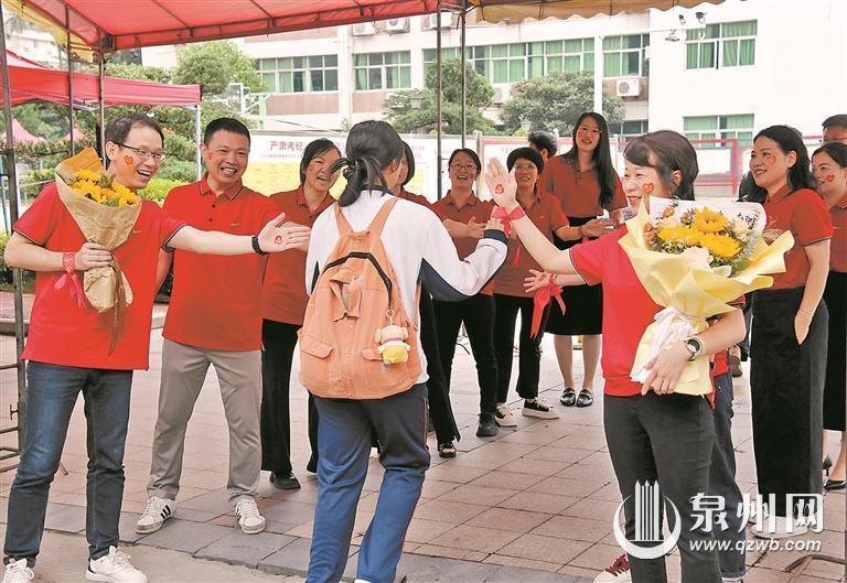 鲜花、旗袍、拥抱、击掌……昨日上午7时许,泉州各个考点外,老师和家长们“花式”送考的身影,成了高考一道特别而又靓丽的风景线。
