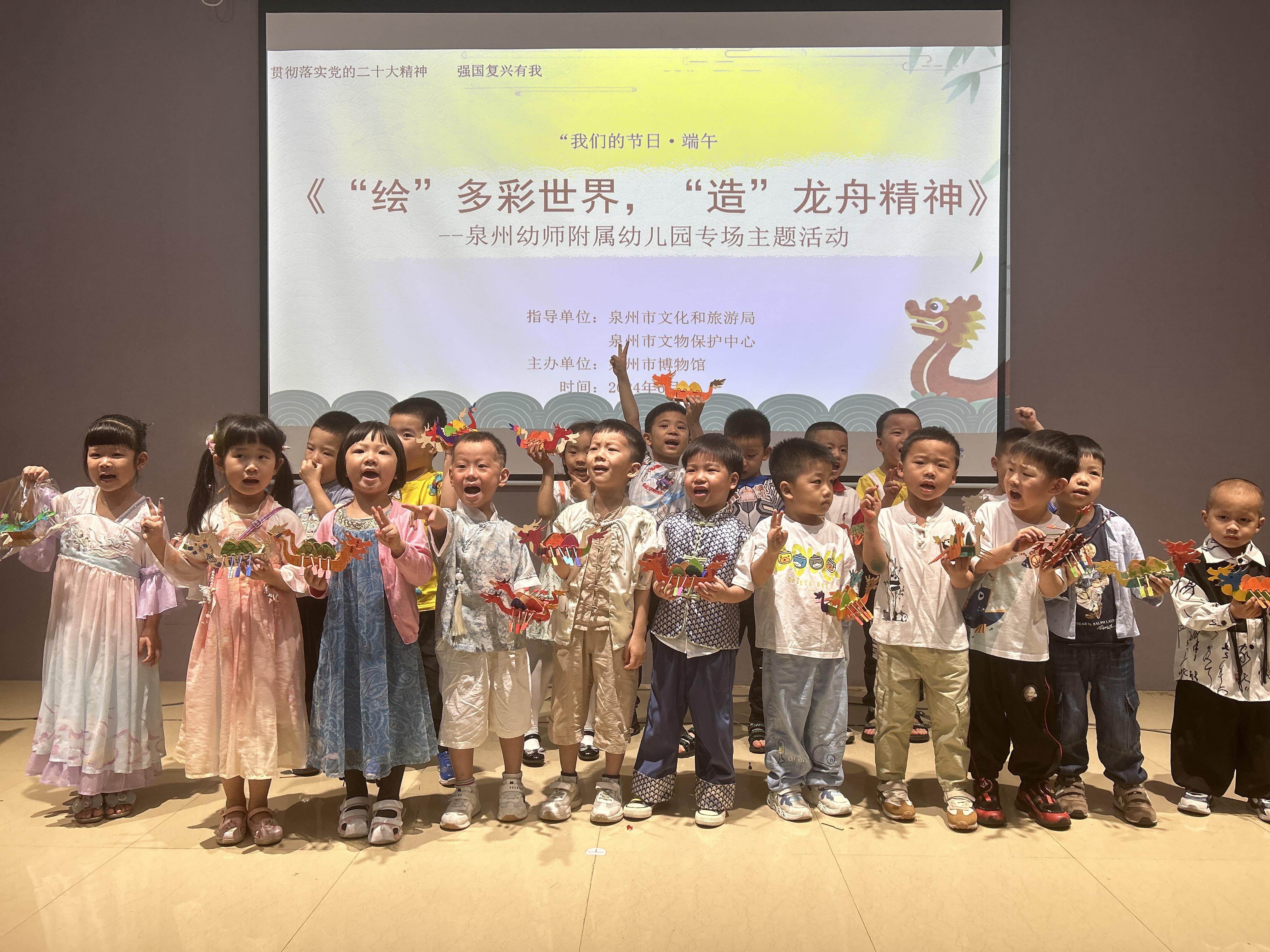 近日,泉州幼师附属幼儿园2023级2班的小朋友们来到泉州博物馆四楼社教活动室开展“绘”多彩世界,“造”龙舟精神端午节文化习俗体验活动。小朋友们不仅聆听了赛龙舟、嗦啰嗹、海上泼水节等闽南特有的端午习俗,还在家长的陪伴下动手建构龙舟模型。这样的体验不仅让小朋友感受到了闽南文化的独特魅力,也在参与的过程中萌发出“我是泉州人”的自豪感。(通讯员林颖)