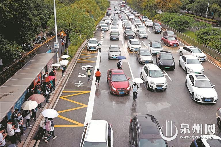 记者走访发现,从城东中学往华侨大学方向的道路上,也有部分车主在接送学生,学生可从人行天桥通过,较为安全。