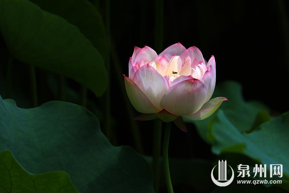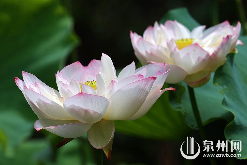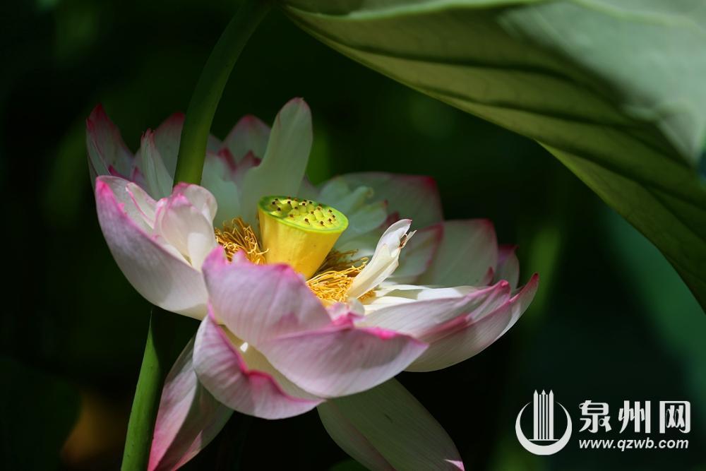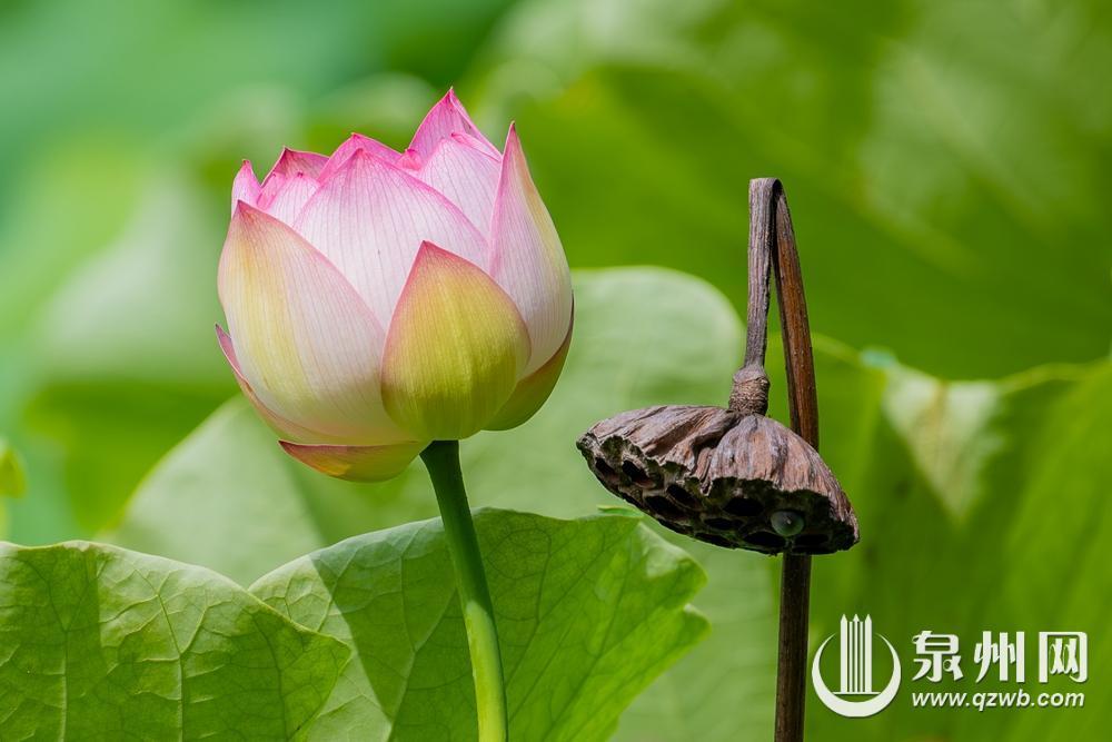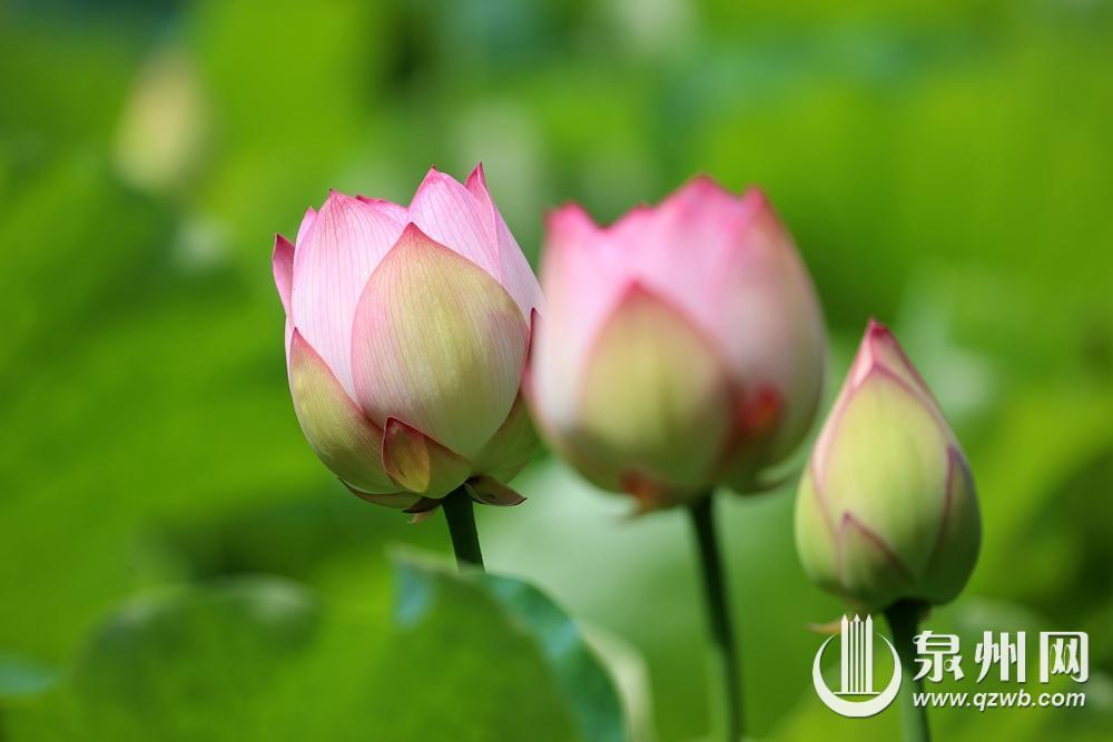 6月12日,泉州市区刺桐公园里,满池碧荷随风起舞,粉白色的荷花在绿叶之间摇曳,吸引人们围观、拍摄。(陈起拓 摄)