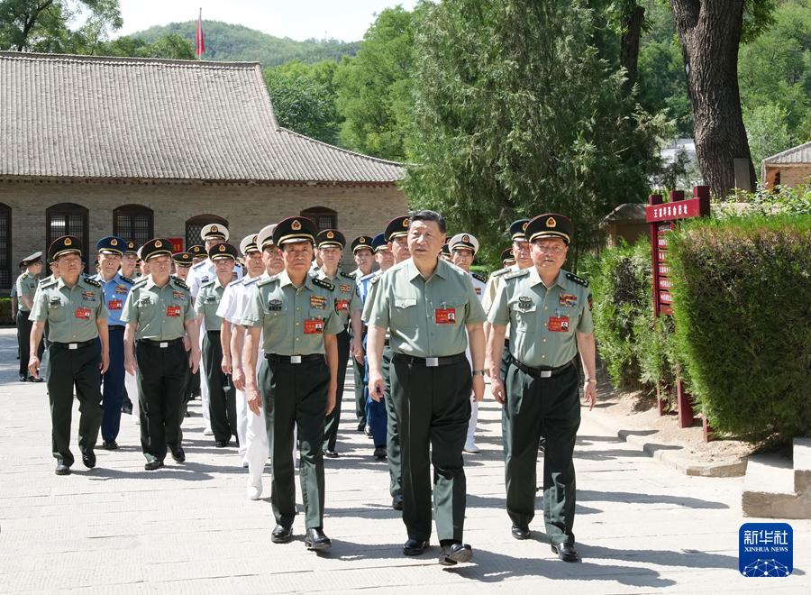 宝塔山下,延河水畔,革命圣地延安满目葱茏,生机盎然。17日下午3时许,习近平带领军委一班人和各部门各单位主要负责同志瞻仰王家坪革命旧址。王家坪是1937年8月至1947年3月中央军委驻地,是延安时期党中央和中央军委重要决策指挥中心。在中央军委会议室,习近平认真听取讲解,观看反映延安时期重大战役运筹指挥情况的历史图表,感悟党中央和中央军委的领导智慧和艺术。习近平来到毛泽东、周恩来、朱德等老一辈革命家旧居,重温老一辈革命家在延安的革命经历,缅怀他们的丰功伟绩。途经“桃林广场”,习近平了解陕甘宁边区创造性开展双拥运动的情况,同大家共同回味当年充满革命乐观主义精神的战斗生活。在中央军委礼堂,习近平仔细观看历史照片,同大家深入交流,回顾党中央和中央军委领导全民族抗战和解放战争的光辉历程。习近平指出,10年前我们到古田召开全军政治工作会议,今天我们来延安召开军委政治工作会议,再一次寻根溯源。新时代新征程,强国强军前景光明,任务艰巨。全军高级干部要牢记初心使命,带头弘扬延安精神,带头加强革命性锻造,扛起党和人民赋予的历史重任,团结带领广大官兵打好实现建军一百年奋斗目标攻坚战,把强军事业不断推向前进。