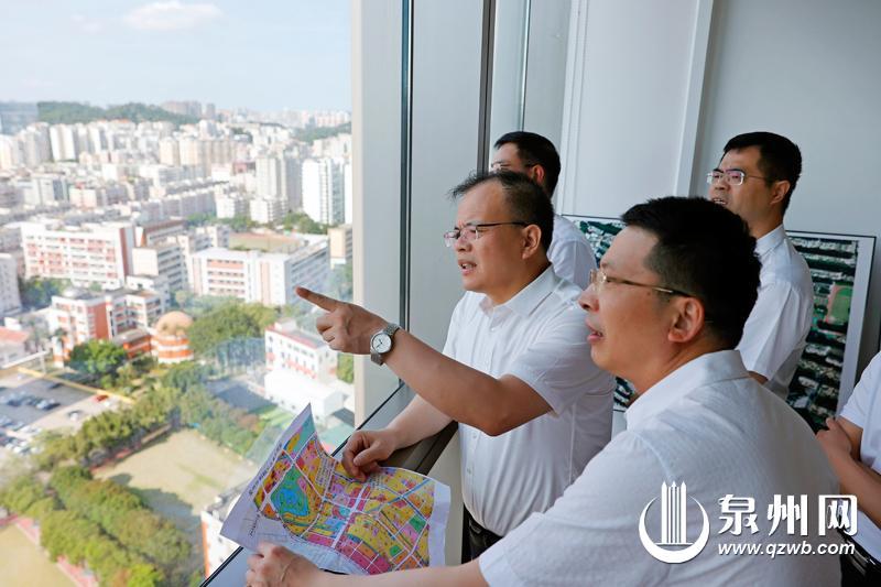 在丰泽,蔡战胜一行登上楼宇高处,俯瞰中心市区,了解各片区的规划设计、功能布局、基础设施配套、交通线路走向等,与基层干部探讨系统性推进城市片区开发建设、招商引资的思路和举措。