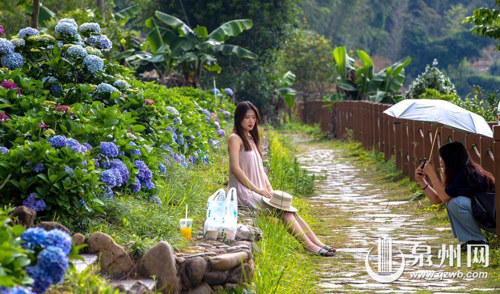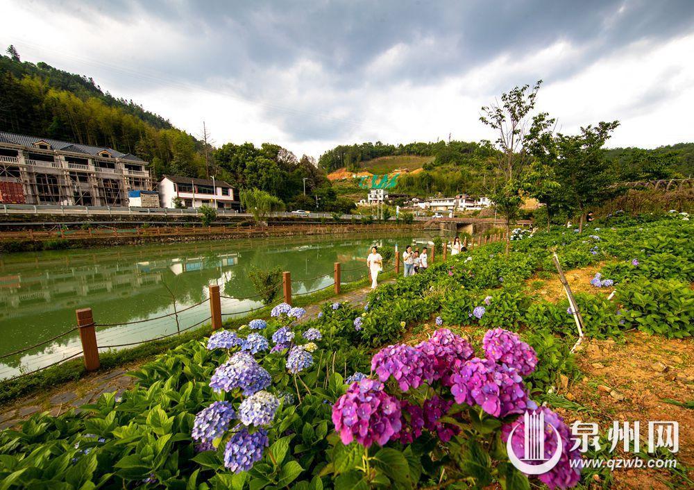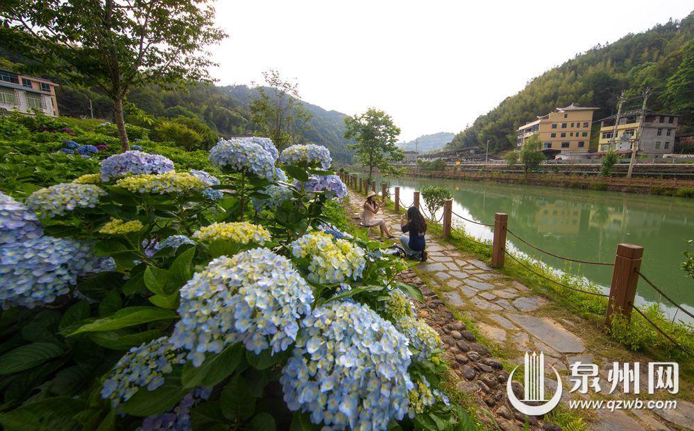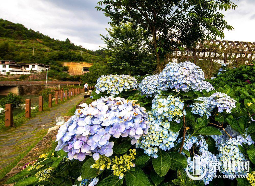 泉州网6月26日讯(融媒体记者 许钹钹 郑光前 林婉清 庄丽祥)德化县浔中镇石山村,清水溪畔流水淙淙。沿溪而行,花香满径,簇簇团团的绣球花将夏天点缀得绚丽又浪漫。