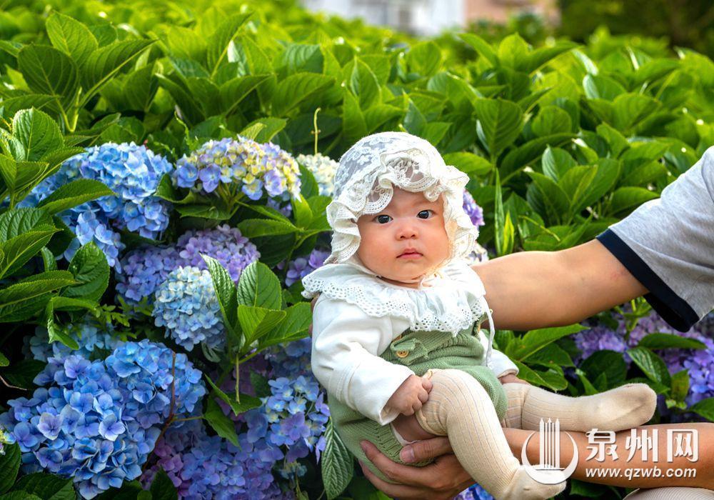 绣球花不愧是夏花的“顶流”。石径沿溪蜿蜒,漫步其间,青的、蓝的、粉的、紫的、红的……拥有“多巴胺”配色的花朵自带梦幻浪漫气息。微风轻拂,连成一片的花海清丽婉约间又有一番妩媚动人之姿。三三两两的游人被花吸引,手中的相机快门一次次响起。亲子、闺蜜、情侣,身旁的游伴也许不同,那掩映花丛的笑脸却如此相似。
