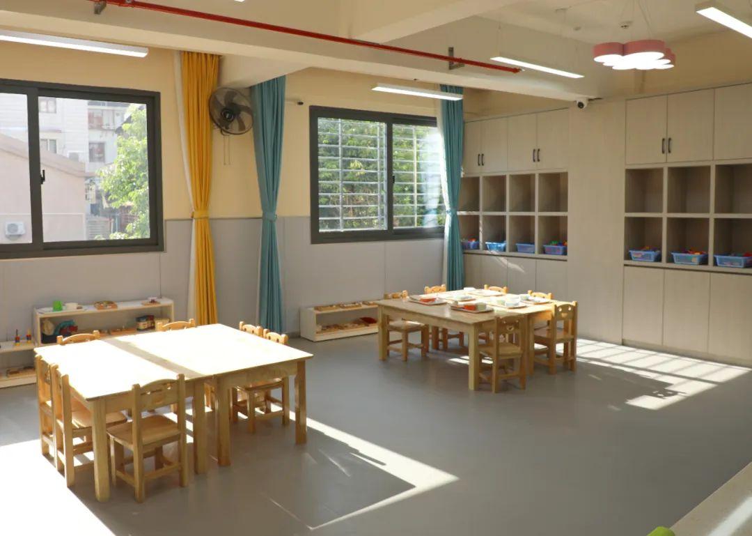 走进心心托育园,教室窗明几净,原木色的桌椅、创意童趣的装饰让整个环境充满了家的温馨;户外活动区安全宽敞,有小型滑梯、攀爬区、小木马等游戏设施,让孩子们尽情玩耍……小到桌椅、扶梯,大到盥洗室、多维活动空间,整个托育园处处尽显细节与用心,为孩子们提供细致呵护。