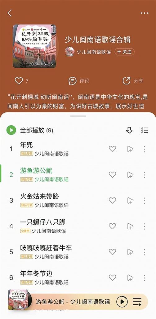 泉州网7月2日讯 (通讯员吴秋瑜 融媒体记者张素萍 文/图)近日,泉州鲤城联手腾讯打造的首张“少儿闽南语歌谣合辑”正式推出,不少闽南网友在音乐平台搜索收听,感受刺桐城的动听闽南谣。