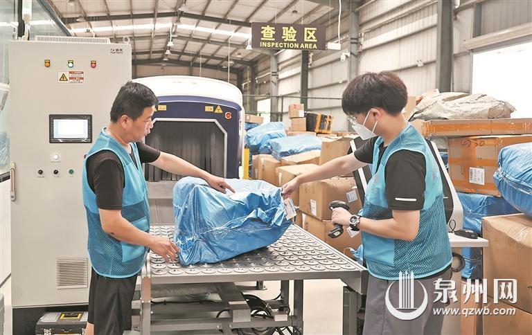 泉州网7月3日讯(融媒体记者 刘文艳 林劲峰 通讯员 吴敬鹏 王晓芸 文/图)7月2日,泉州综保区跨境电商监管中心内,仓储和物流企业工作人员马不停蹄地取货、验单、打包,叉车来往穿梭,一派繁忙景象。在查验区,传输带的一件件包裹经过泉州海关关员CT机智能审图后,6秒即完成过机查验,数以万计的跨境电商包裹在安全高效完成通关手续后,发往国外消费者手中。“国潮泉州”品牌通过跨境电商加速“出海”,成为泉州外贸领域的一抹新亮色。
