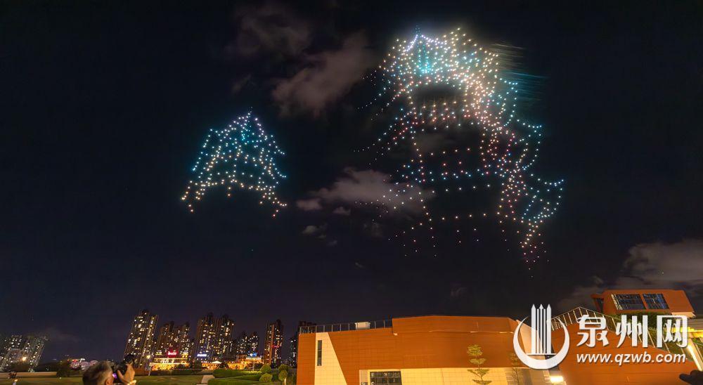 昨晚,千架无人机如繁星般点缀晋江池店夜空,编织出一幅幅动态的天幕画卷。据悉,本次星空秀由中国航空学会主办,由第八届全国青少年无人机大赛(福建省赛)空中巨幕编队表演,1000 架无人机同步升空,运用最新编程技术,展示灵动立体画面,为泉州湾夜景添彩。(融媒体记者许雅玲 通讯员廖宜和 摄)