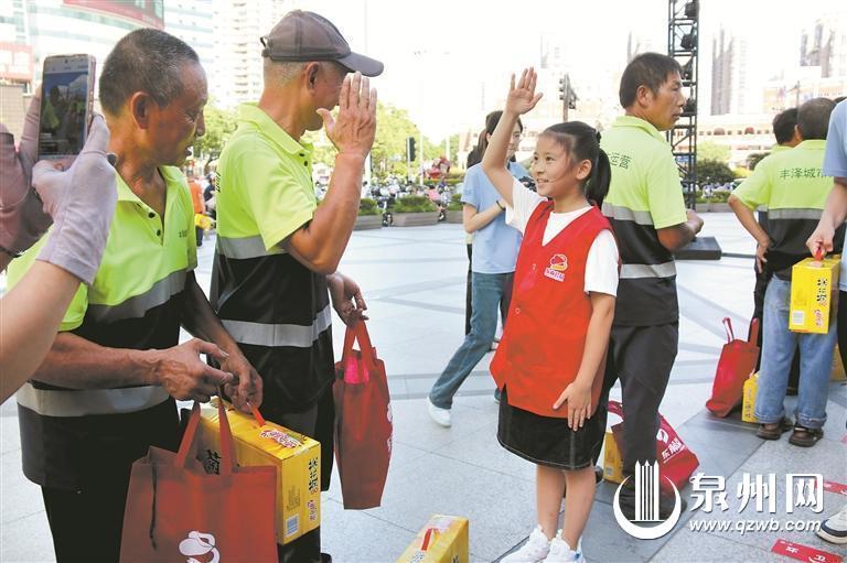 活动现场,数十名学生志愿者也早早赶来搬水、送水。启动仪式后,志愿者兵分多路送出矿泉水150箱。鲤城区实验小学的20名学生在老师和家长陪同下,给交警、环卫工、快递小哥等沿路送水。此次该校不但捐赠了50箱矿泉水,还设立一个“爱心冰柜”。