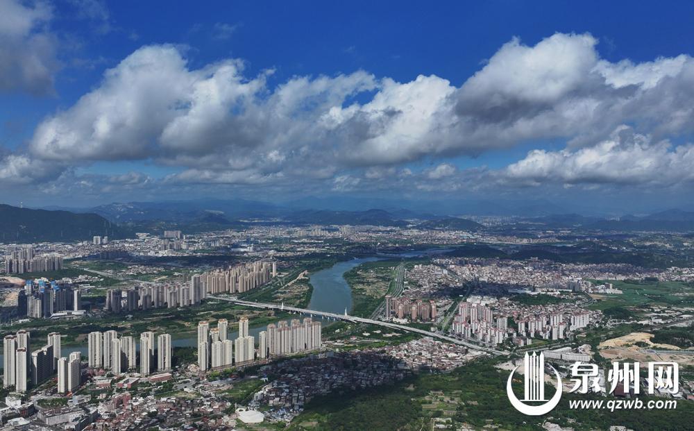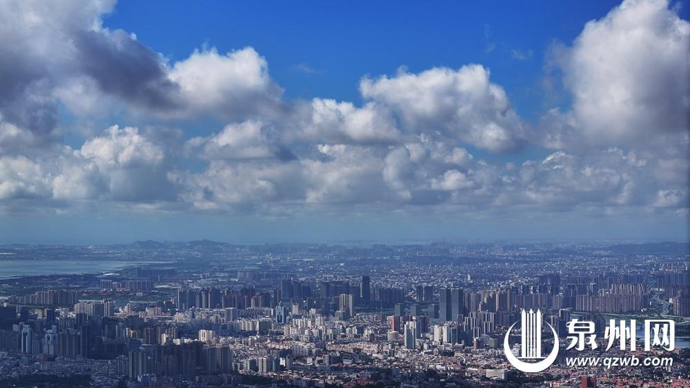昨日,泉州市区上空朵朵白云随风飘动,就像“棉花糖”状的云漂浮在城市楼宇上方,满满大片既视感,城市与自然交织出美丽画卷。(融媒体记者王柏峰 摄影报道)