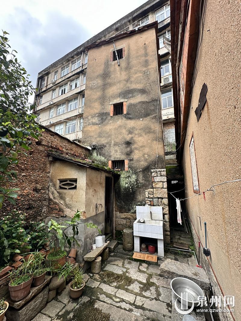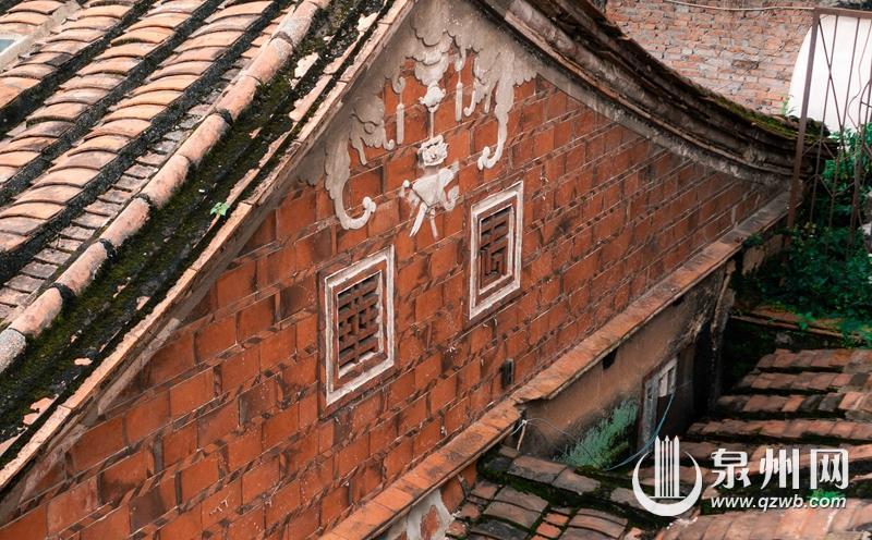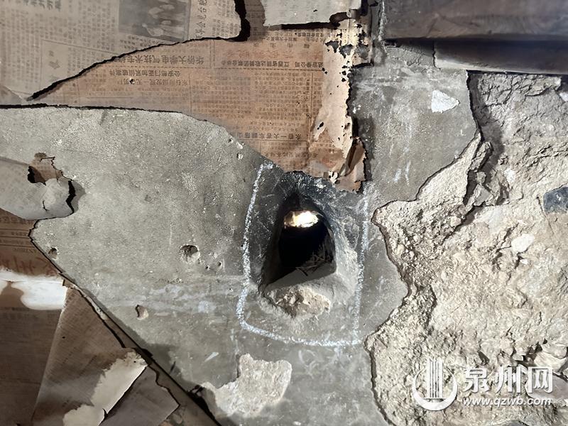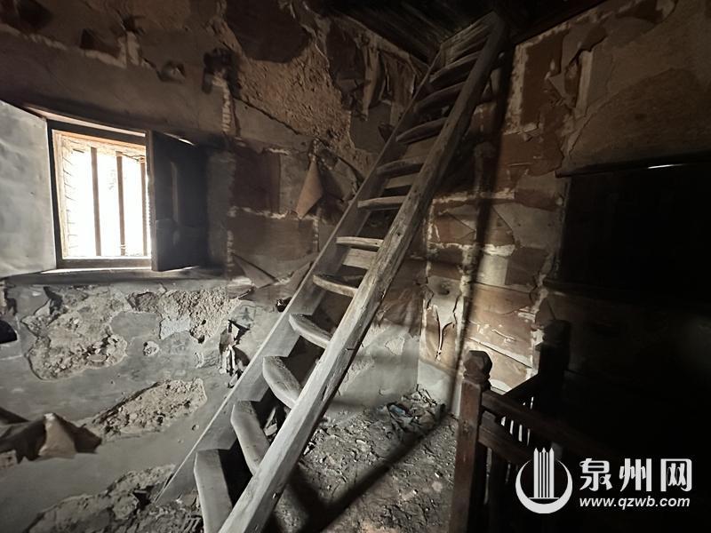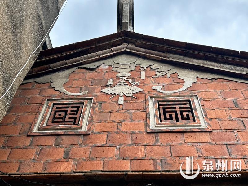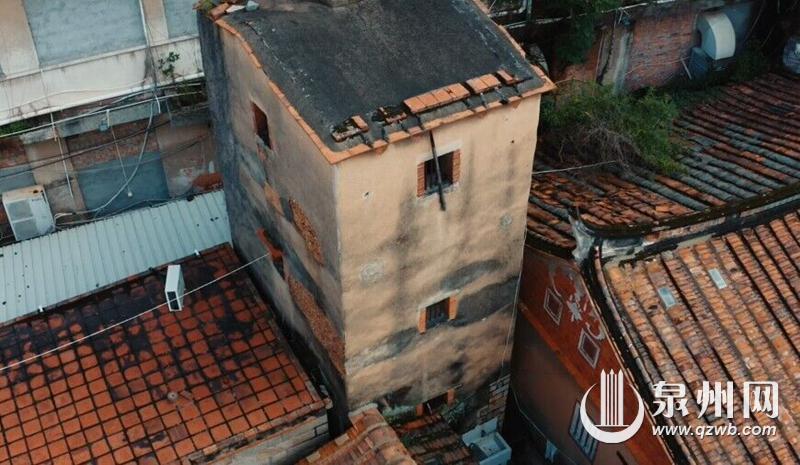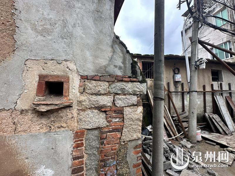 在许厝的东护厝南侧,可看见一座狭窄高耸的三层枪楼。每层有窗,窗边都有几处小孔。林月霞介绍,这座枪楼应该是跟大厝一起盖起来的,主要功能就是观察和防御,里面空间很小,不适合居住,只适合临时驻点观察。枪楼每层窗户很小,加上旁边几处小孔,观察者便于隐蔽自己,发现土匪。