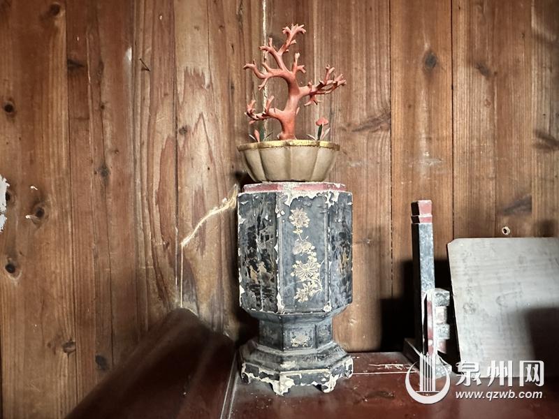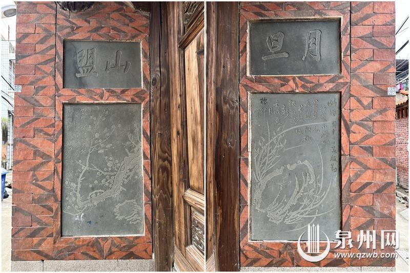 在许厝门前有两处碑刻,西侧写有“月旦”,下方是兰花,上有清末泉州举人曾遒题写的诗句:“妙得园中日日春,殷勤培护不嫌频”,落款是“壬戌夏月”。从曾遒(1868-1954)所处年代推算,壬戌年指的是1922年,可见这座老厝已有百年历史。曾遒为许家题诗绘画,可见当年许家的名望。