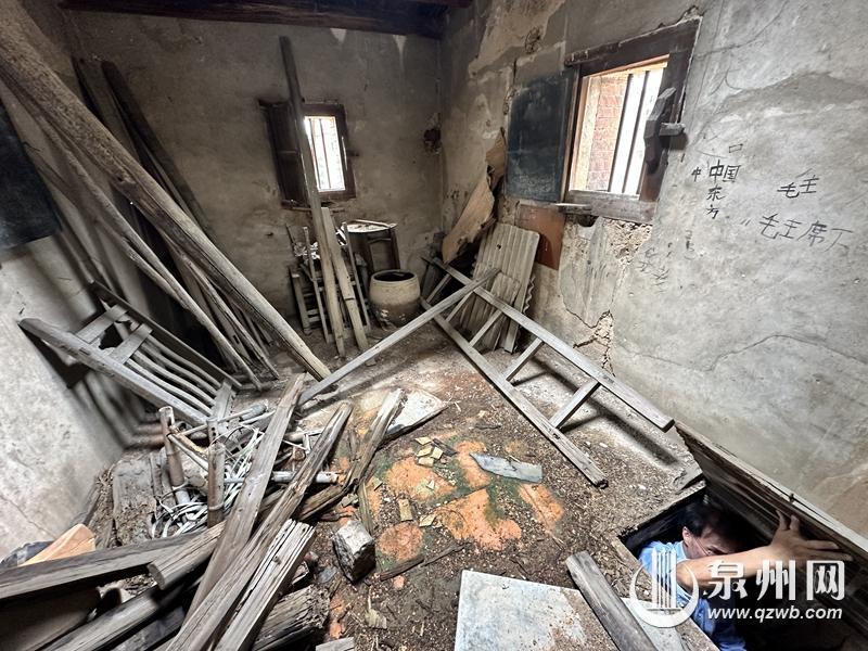 枪楼不通水电,一层因为周边建筑遮挡,里面漆黑一片,经过狭窄的木质楼梯可到第二层,再经过木梯抵达第三层。每一层都积下厚厚的灰尘。