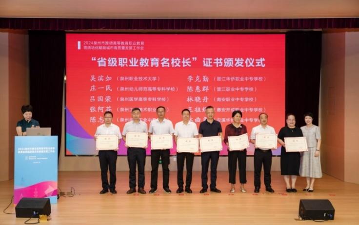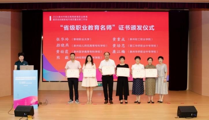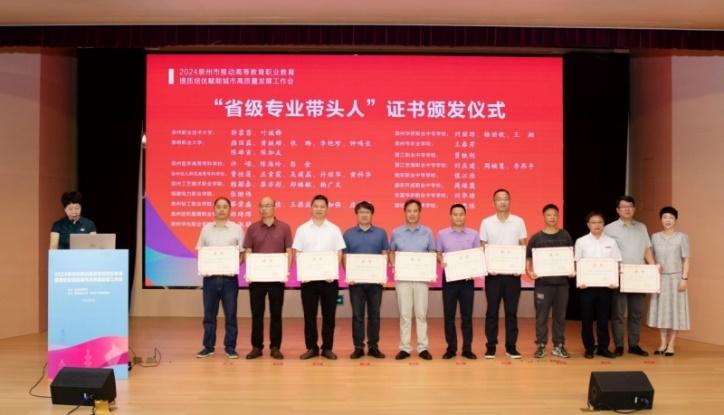 会上,泉州市委教育工委书记、市教育局局长刘殊芳为泉州市入选福建省职业院校名师名校长和专业带头人颁发了证书。