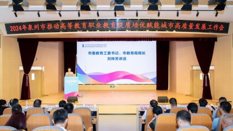 泉州网7月10日讯(记者洪荣堆 通讯员李燕燕 颜岚岚)7月8日,2024年泉州市推动高等教育职业教育提质培优赋能城市高质量发展工作会在黎明职业大学召开。泉州市教育局、在泉高校和中职学校主要负责同志,以及入选省级职业教育名师名校长和专业带头人代表参会。会议由泉州市委教育工委委员、市教育局副局长陈军宣主持。