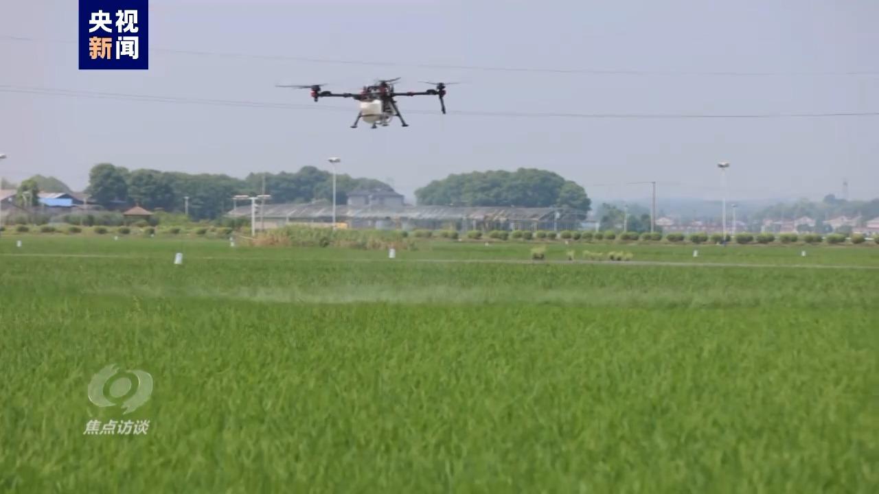在湖南省常德市谢家铺镇港中坪村,种粮大户戴宏正在用今年新购置的无人机喷洒农药,这套无人机还配套一台高精度光谱遥感小型设备,只需要在田间飞上一圈,就能将杂草和秧苗区分标记。