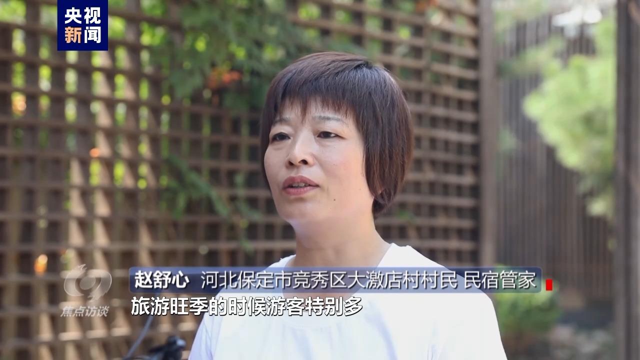 河北保定市竞秀区大激店村村民、民宿管家 赵舒心:旅游旺季的时候,游客特别多,我们的收入都能达到五六千。