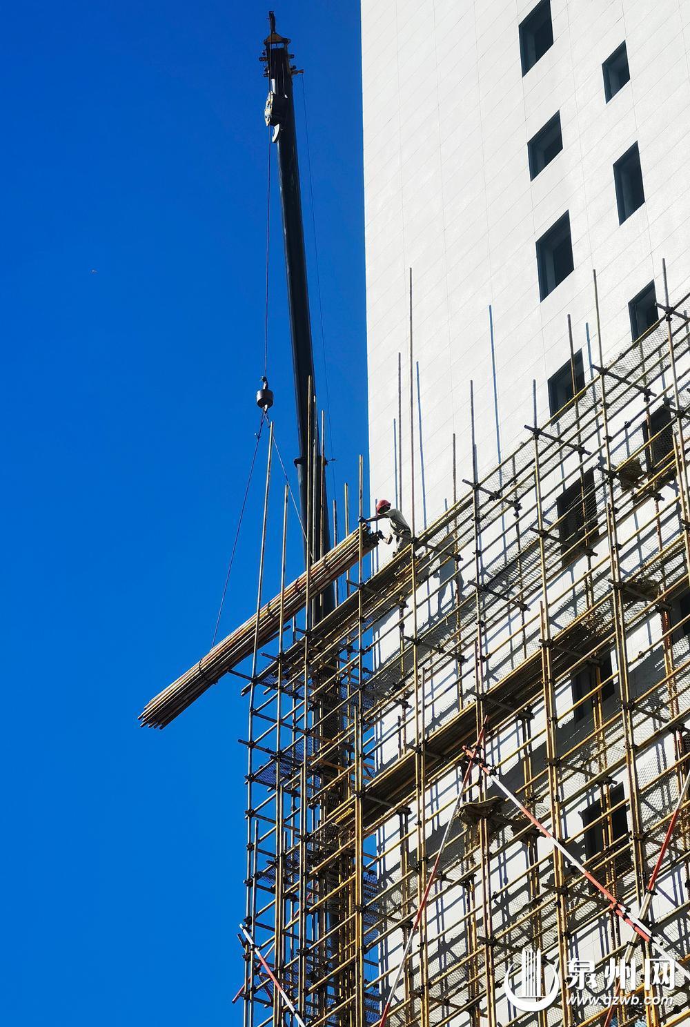 在涂门街施工现场,工人们顶高温、战酷暑,确保施工项目建设有序推进。