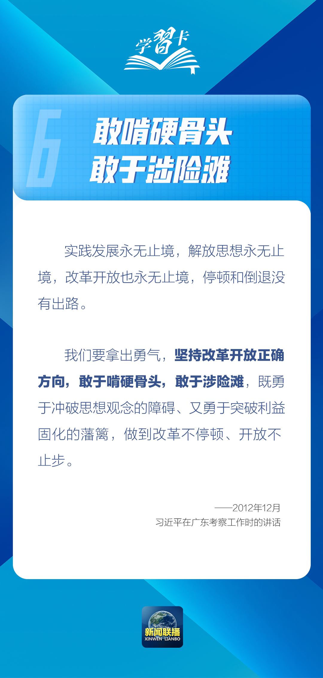 “改革开放是我们党在新的时代条件下带领人民进行的新的伟大革命,是当代中国最鲜明的特色,也是我们党最鲜明的旗帜。”