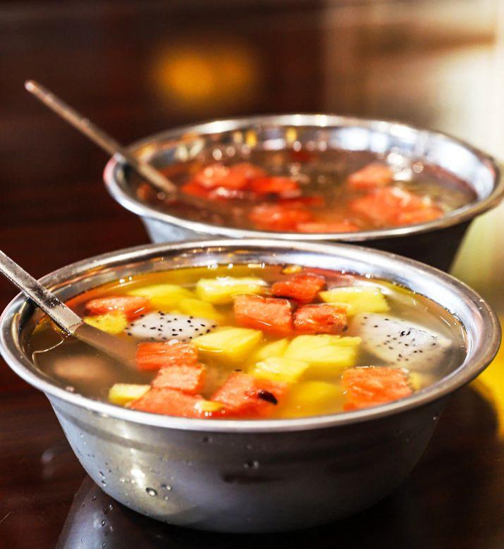 对泉州人来说,没有四果汤的夏天是不完整的,街头的摊贩、转角的老字号前,都是排着队购买的人。泉州四果汤可是上过《舌尖上的中国》,其顾名思义就是搭配4种食材的甜汤,其中石花膏一般是必选食材,还可以随意搭配自己喜欢的食材,如哈密瓜、西瓜等时令水果,芋圆、地瓜圆等手工小吃,芋泥、红豆、绿豆、红薯、薏米等也都是常见的配料。如今的四果汤店,配料一般多达20多种,顾客可根据喜好增减。