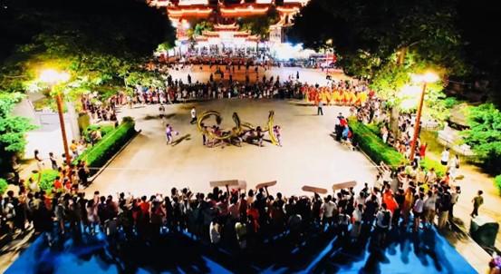 当晚20:00,灯光璀璨的府文庙广场上,青春激昂的音乐声突然响起,黎明职业大学、成都体育学院、广西师范大学、桂林理工大学四所院校的舞龙队伍闪现,如同一道耀眼的星光瞬间吸引了广场所有人的目光。四条巨龙先后腾空而起,时而盘旋昂首,时而俯冲翻滚,活动现场气氛热烈。