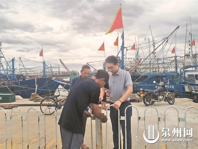 同一时间段,在石狮祥芝国家中心渔港,石狮市祥芝渔港义务救援协会的成员们驾驶着应急快艇或辅助船,穿梭于停靠港口的船只间,检查渔船的加固情况。看到船只尚未加固完毕,成员们便及时拍照上传船东群,通知船主做好加固工作。协会会长蔡富贵告诉记者,每年台风来临前,他们都会密切关注海上情况,安排人员值班,增加巡逻的频次,一旦海上出现突发险情,将立即联动当地的派出所、消防等部门实施救援。