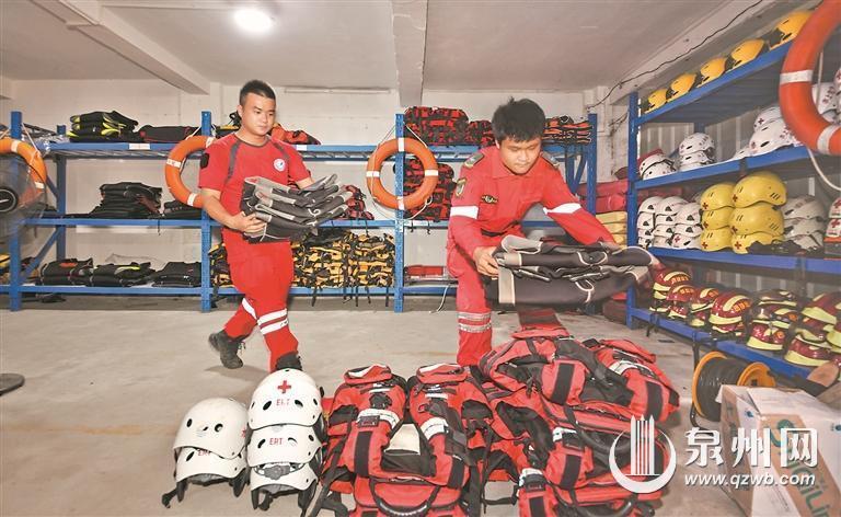 昨日下午4点多,泉州市红十字迅捷应急救援队副队长苏竟成刚从河湖、水库等水域巡查回来,就马不停蹄赶到位于南安市区成功街的队部物资仓库。这里储存了大量应急救援装备。
