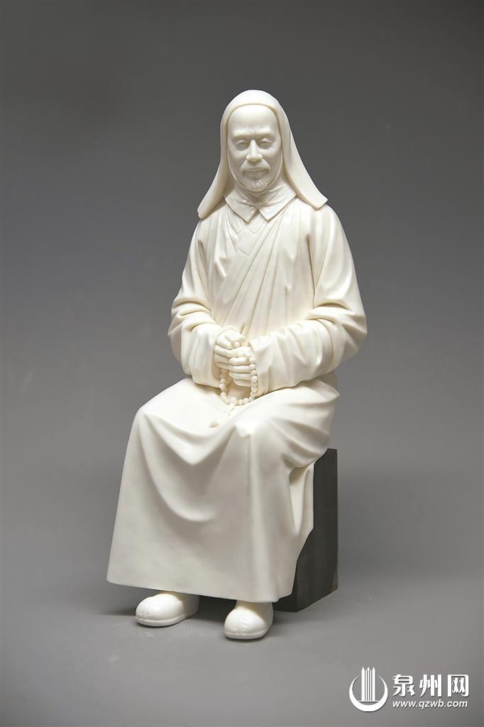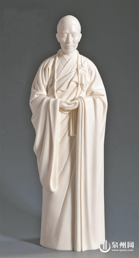 庄少卿、黄明玉夫妇创作的白瓷作品《弘一大师》 (陈栋青 供图)