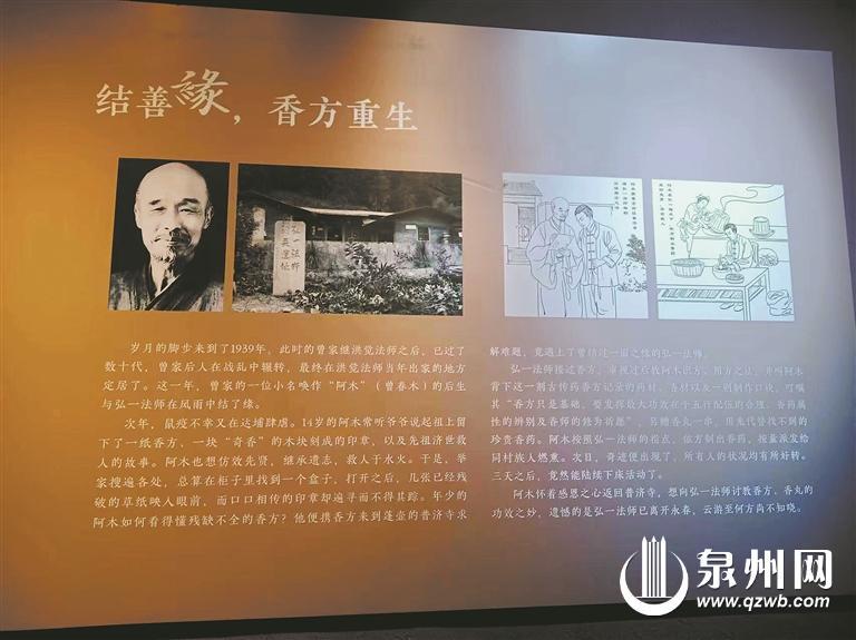 彬达制香厂香文化长廊里关于弘一大师结善缘、让香方重生的故事。(林雪娟 摄)