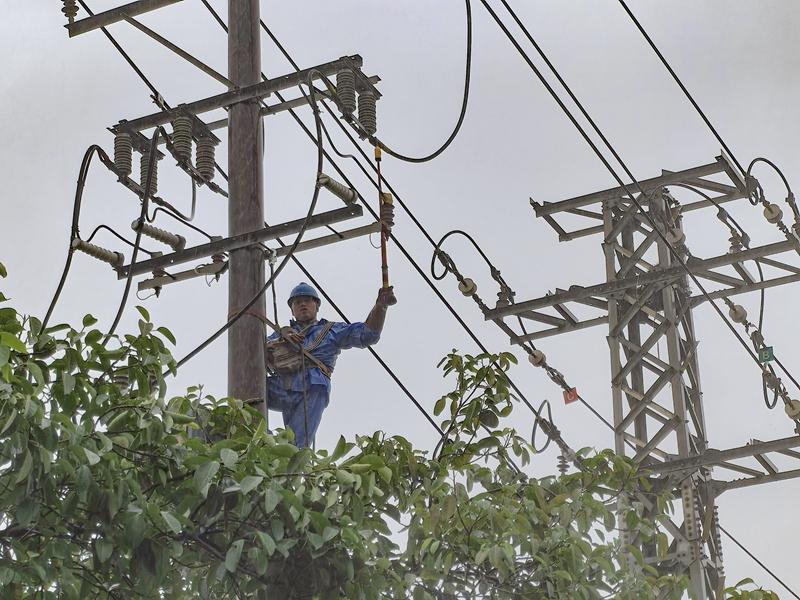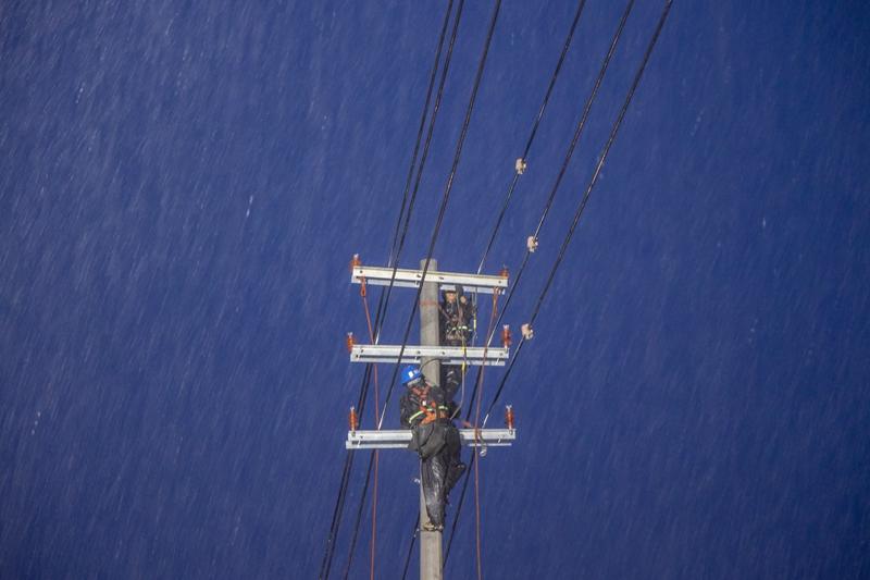 7月25日,国网石狮市供电公司组织人员迅速完成受“格美”影响的10kV石码Ⅱ回线路故障抢修工作,以最快速度恢复正常供电,保障当地民众用电不受影响。(蔡灵智 摄)