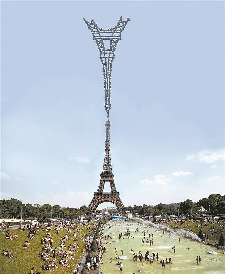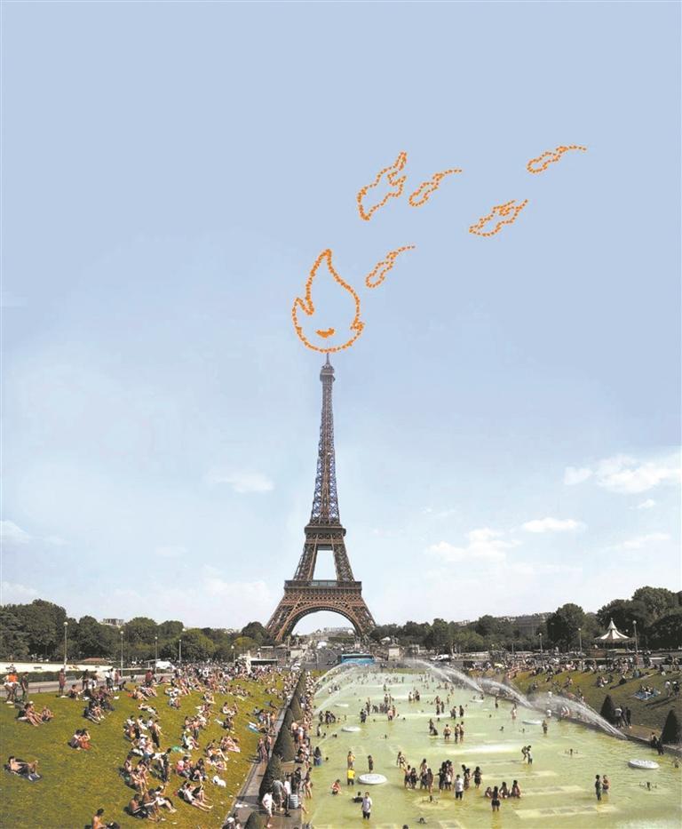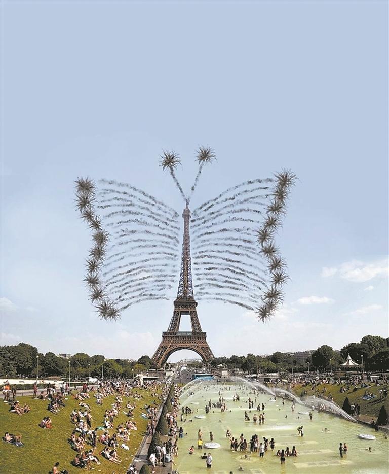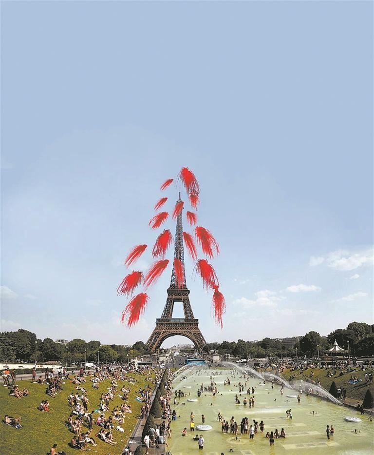 蔡国强的天空绘画《复活》,在马勒C小调第二交响乐《复活》的“终曲”伴随下,以16幕白天烟花与数千架载着色彩喷管的无人机在空中与埃菲尔铁塔共舞,成就巴黎全城共睹的天空绘画胜景。