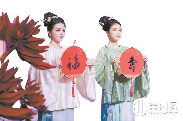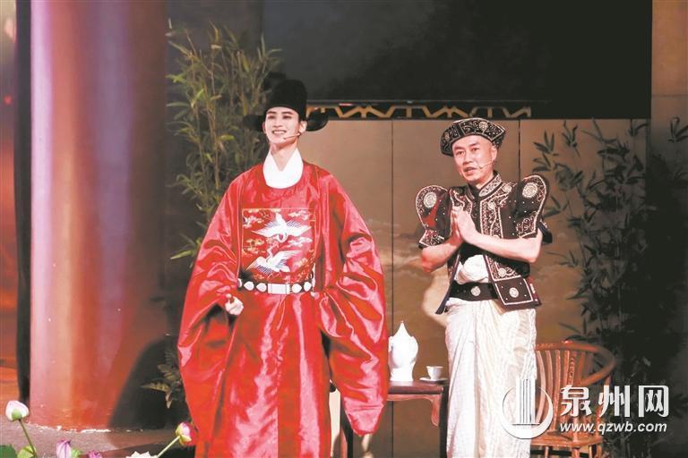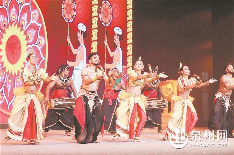在两名提灯侍女的指引下,“泉州知府”和“科特王子”登场,他们一边品茶赏乐,一边观赏充满异域风情的斯里兰卡舞蹈、具有闽南特色的拍胸舞和南音等表演,一幅华彩“夜宴图”徐徐展开。