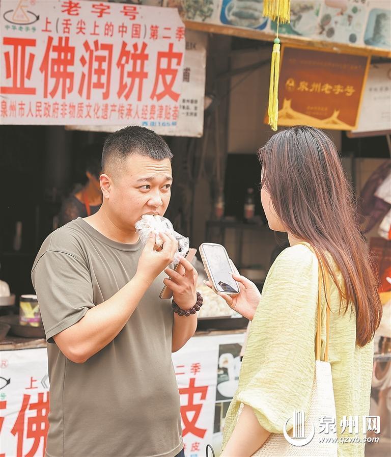 泉州人拜年时,主人家都会拿出甜食让客人“甜一下”。“甜过”的客人会回上一句:“呷你甜,呼你越吃越‘好生’”,“好生”是越来越年轻的意思。麻粩、寸枣、花生酥、金橘糖、桔红糕、冬瓜糖、花生仁糖、蜜饯……泉州人的甜食集起了甜、香、酥、脆等口感,“甜”一下便满口生香。泉州的甜食不仅味道好,而且寓意好。甜甜蜜蜜的麻粩,带有来年生活红火的好彩头;金橘糖的“橘”在闽南语中与“吉”同音,象征大吉大利;寸枣形似红枣,有着早生贵子的寓意……每一样甜食里都饱含着对新一年的甜蜜祝福。