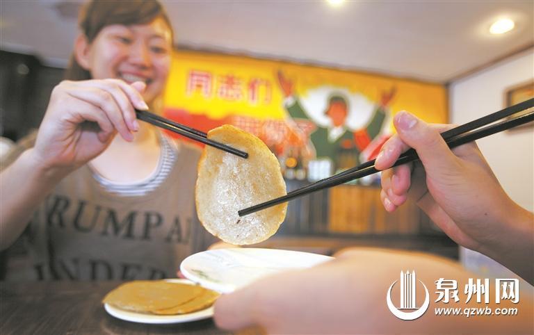 刚出锅的“煎䭔”,麦香四溢。(泉州晚报资料图片)