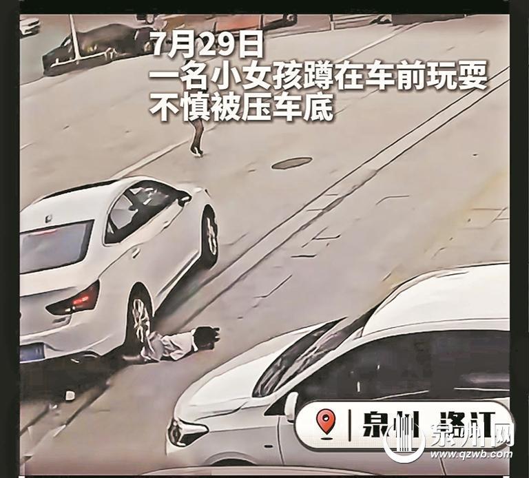 女孩被压在车轮下,情况危急。