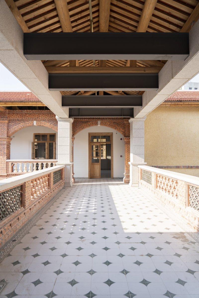 目前,提升改造成效显著:通过钢结构框架植入加固,增设连廊,组合活用老旧纯木屋架、土坯墙、砖石墙等既增强建筑结构的安全性和稳定性,也有效保护原建筑的历史文化特色,使整个场区更具有整体性和完整性;复古又清新的水洗墙面、拆解旧物而寻得的花瓶栏杆、整面的鹅黄弹涂墙面搭挂着堆塑而成的几只俏皮滴水兽,完美呈现了传统建筑的古典风韵又不着痕迹地显露现代生活的朝气蓬勃。