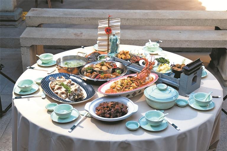 这是南安首次以成功品牌为核心,打造文旅相融的南安城市IP。南安市文体旅游局党组书记、局长黄秋燕介绍,为打造“成功家宴”,南安市在各乡镇(街道、开发区)、各星级酒店、文史类专家等社会各界的广泛参与下,征集丰富多彩的美食菜单,最终形成一桌富含郑成功文化精神和南安本土特色美食的南安市级“成功家宴”。菜品中有丰州石亭绿茶、洪濑鸡爪、梅山寸枣、诗山粕丸,有翔云蹄髈、奎霞海蛎、蓬华手工面,还有东田溢鸭汤、英都麻糍以及蓬华脐橙、彭溪菠萝,涵盖了南安的山海美味。为搭配“成功家宴”,还精选了“南安窑”作为配套餐具。