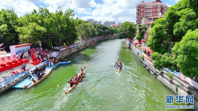 7月6日,由泉州市鲤城区委区政府联合泉州市体育局、泉州水务集团共同主办的2024年泉州市“龙翔刺桐”闽台龙舟邀请赛鸣笛开赛,来自台湾、湖北、福建等地的40余支龙舟队伍齐聚笋浯溪,在泉州的古护城河上演速度与激情。市民和游客纷纷到场呐喊助威,观赏非遗展演,感受体育赛事里的传统文化,有些观众还在比赛结束后上船体验一番亲自上场划龙舟之乐。