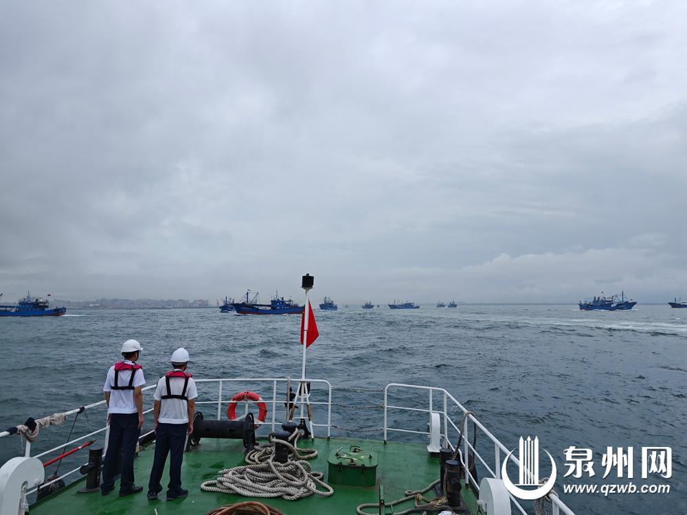 开渔当日,泉州海事局出动5艘海巡执法船艇驻守祥芝渔港、深沪渔港、崇武渔港、商渔船交汇密集区等重点水域,通过VTS远程终端、无人机等开展海空一体“远程+现场”巡航执法行动,做好现场通航秩序维护,有序疏导船舶出港。同时,根据船舶进出港动态,适时调整大型船舶进出港计划,避免产生大规模船舶交汇风险,发布航行警告和安全警示信息,提醒过往商船加强瞭望、注意避让。