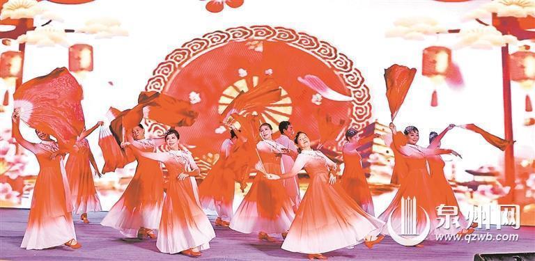 前晚7时许,泉州市老龄服务志愿者艺术团舞蹈队带来了精彩的舞蹈节目《千红》。舞台上,数位身着精美裙子的舞者们在音乐的伴奏下翩跹起舞,她们舞步灵动多变,博得观众的热烈掌声。