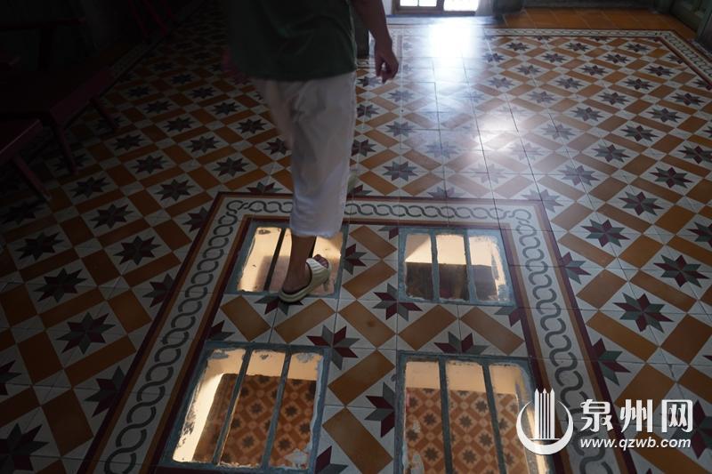 洋楼内部铺有南洋花砖,中间是超厚的采光玻璃,在家就能体验“玻璃栈道”的感觉,使用70多年后,如今踩在上面依旧十分稳固。