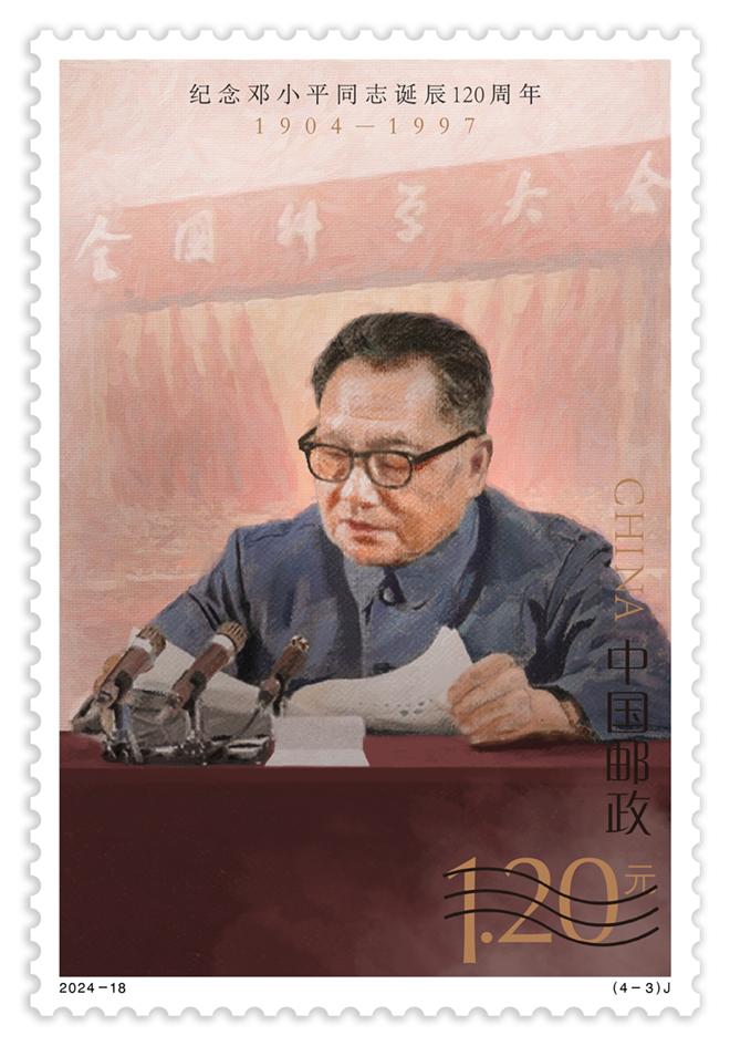 中国邮政定于8月22日发行《纪念邓小平同志诞辰120周年》纪念邮票1套4枚,邮票图案名称为勤工俭学、戎马岁月、科学春天、改革开放。