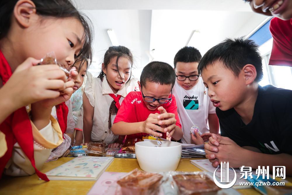 中秋博饼,小朋友体验传统文化。(林劲峰 摄)