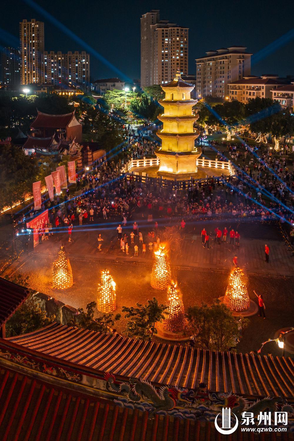 在晋江安海白塔广场举行的“烧塔仔”民俗活动(陈钧 摄)