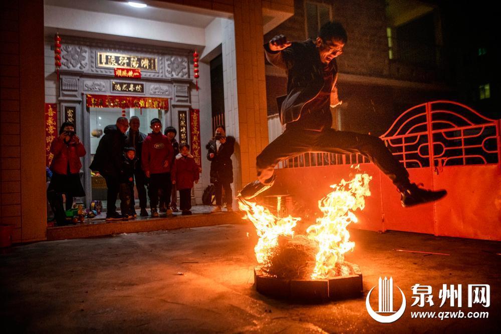 除夕夜,石狮祥芝古浮村民“跳火盆”。(苏德辉 林劲峰 摄)