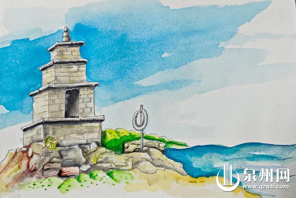 红塔湾清代祈风塔是网红打卡点 (杨遥 绘)