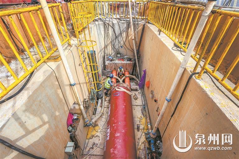 进入8月份,总长2.3公里多的新门街—涂门街,双向四车道的路面仅剩一个车道,供车辆单向通行,其他三个车道,每隔100多米就有一个6至9米深的顶管工作井或接收井。施工人员正在井内操作机械设备,将每截3米长的球墨铸铁污水管向与路面平行的地下五六米深处顶进。“地下环境适宜的话,一小时能够顶进3米,但如果遇到黏土、岩石,施工效率就不好说。”泉州水务集团权属水务工程公司项目经理黄冰水告诉记者,为提高施工效率,尽量减少占道施工给群众带来的出行影响,目前新门街—涂门街段共投入5个施工班组、4套顶管设备,多点平行施工,每天三班倒、不间断作业,力争10月底前完成主干道的污水管网建设。“通常来说,顶管施工是采用一套顶管设备逐步顶进,先完成已有位置顶管作业,再挪移设备开启新一段路的施工。当下这种多套设备平行施工的赶工法,为的是在确保质量安全情况下最大限度缩短施工时间。”一名施工人员说。