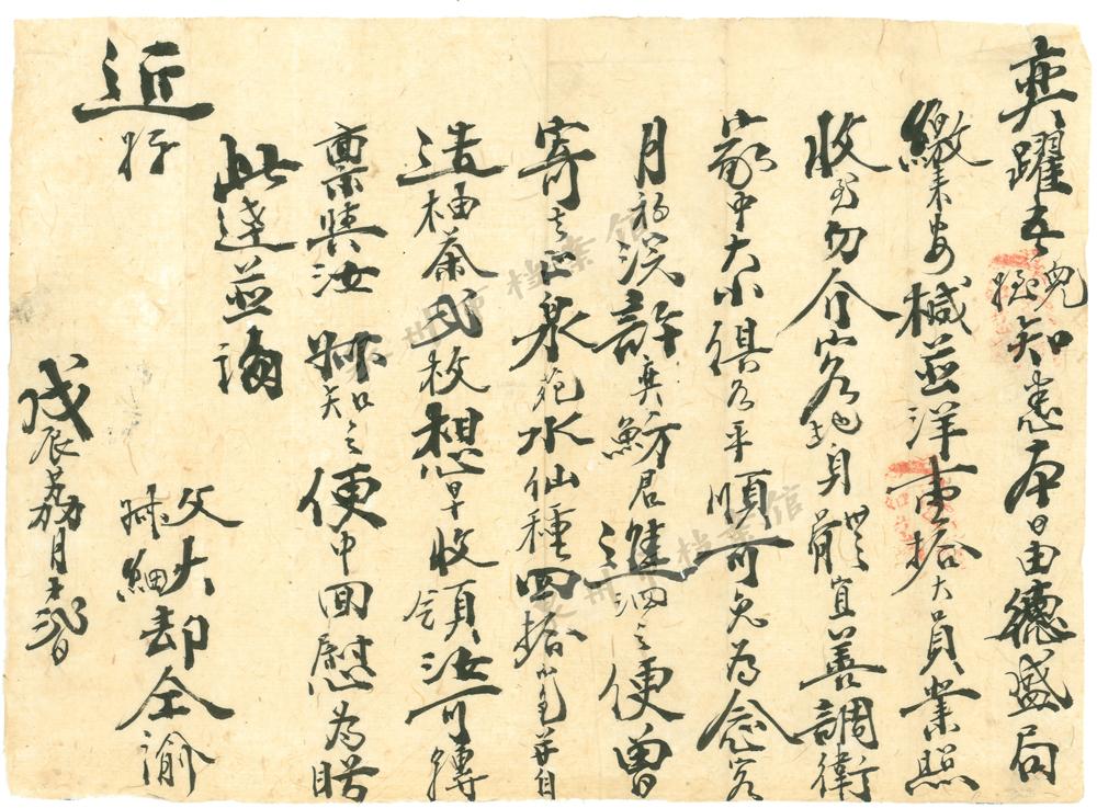 一封写于1907年的侨批,是南安诗山侯氏给远在菲律宾的儿子的回信。信中提及她对儿子身体健康的关切,并提及为他邮寄了石亭绿茶。