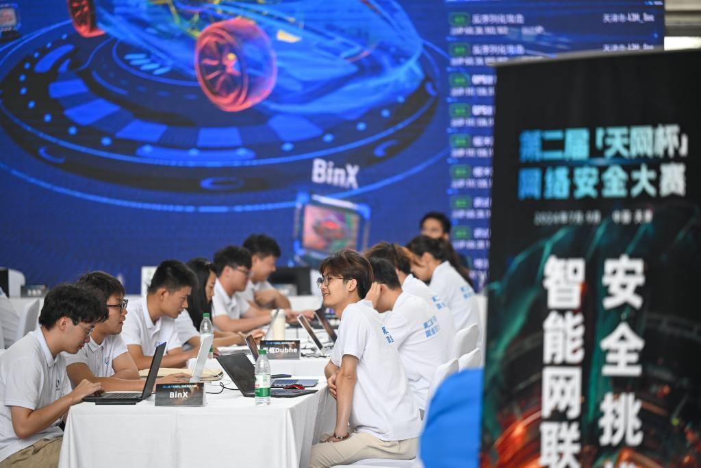 9月4日,选手参加第二届网络空间安全(天津)论坛期间举行的第二届“天网杯”网络安全大赛。新华社记者 孙凡越 摄